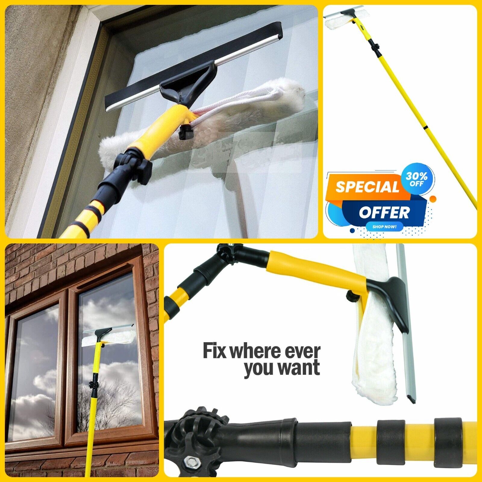 Extendable Telescopic Window Cleaner Glass Cleaning Kit Pole Long With Squeegee