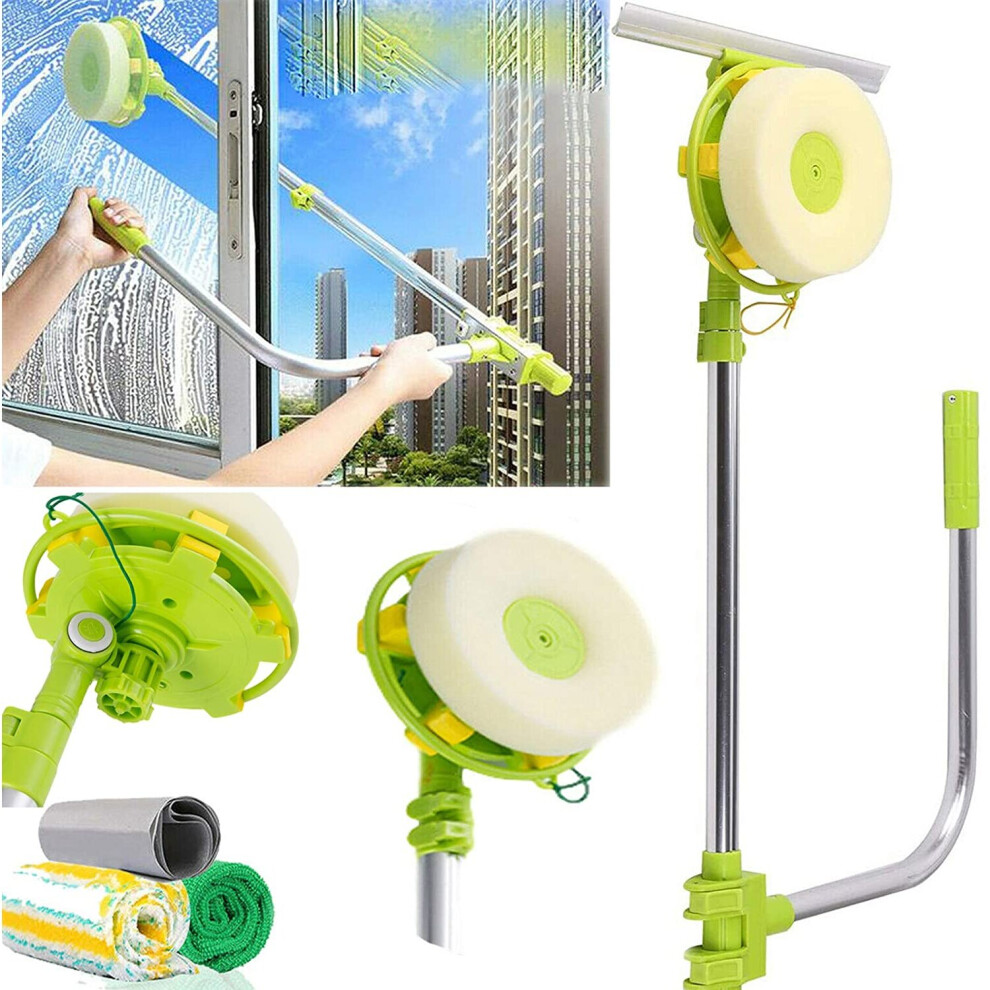 Extendable Telescopic Window Cleaner Squeegee Rotating Head High Rise Cheaning