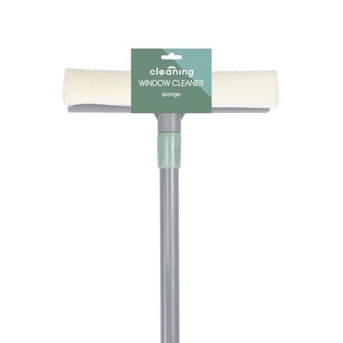 JVL Extendable Sponge Window Cleaner with Telescopic Handle, Streak-Free Glass Cleaning Tool - Grey