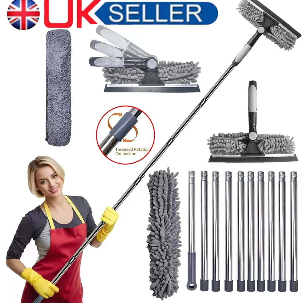 3.5M Extra Long Telescopic Window Cleaning Brush | Microfibre Head | Integrated Squeegee | 180° Swivel Head | Ideal for Tall Houses Buildings High Windows | Pro Extendable Cleaner Kit