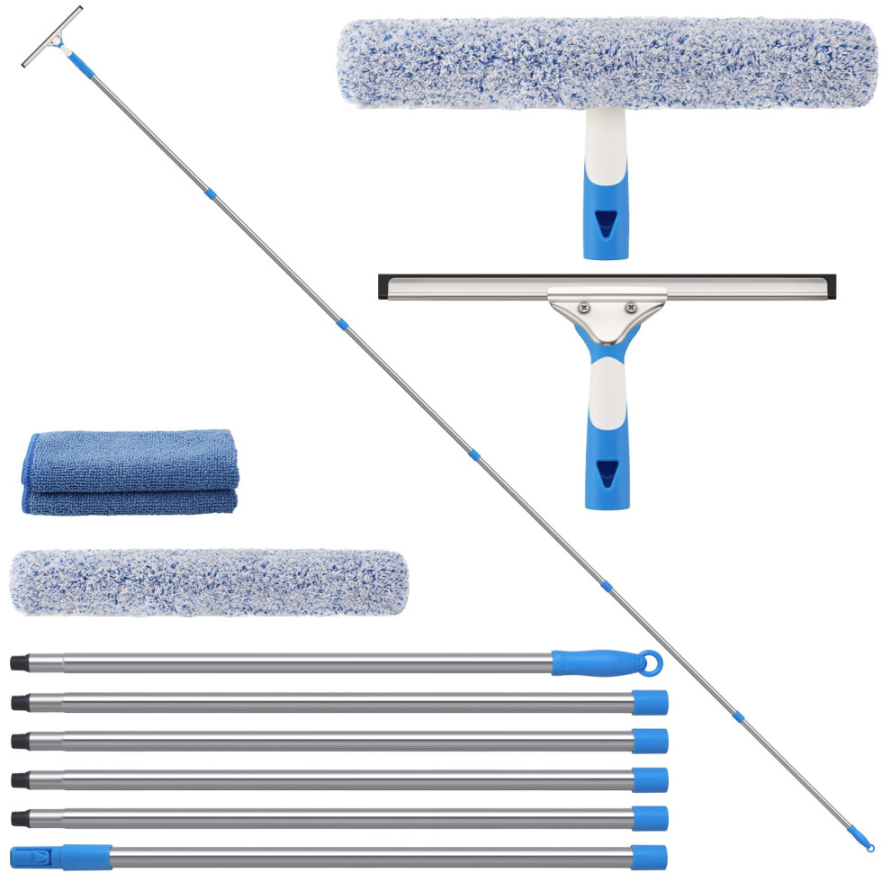 12.7Ft (3.9m) Window Squeegee Cleaning Equipment kit with Long Handle - Extendable Window Cleaner Tool Kit, Window Squeegee and Microfiber Window