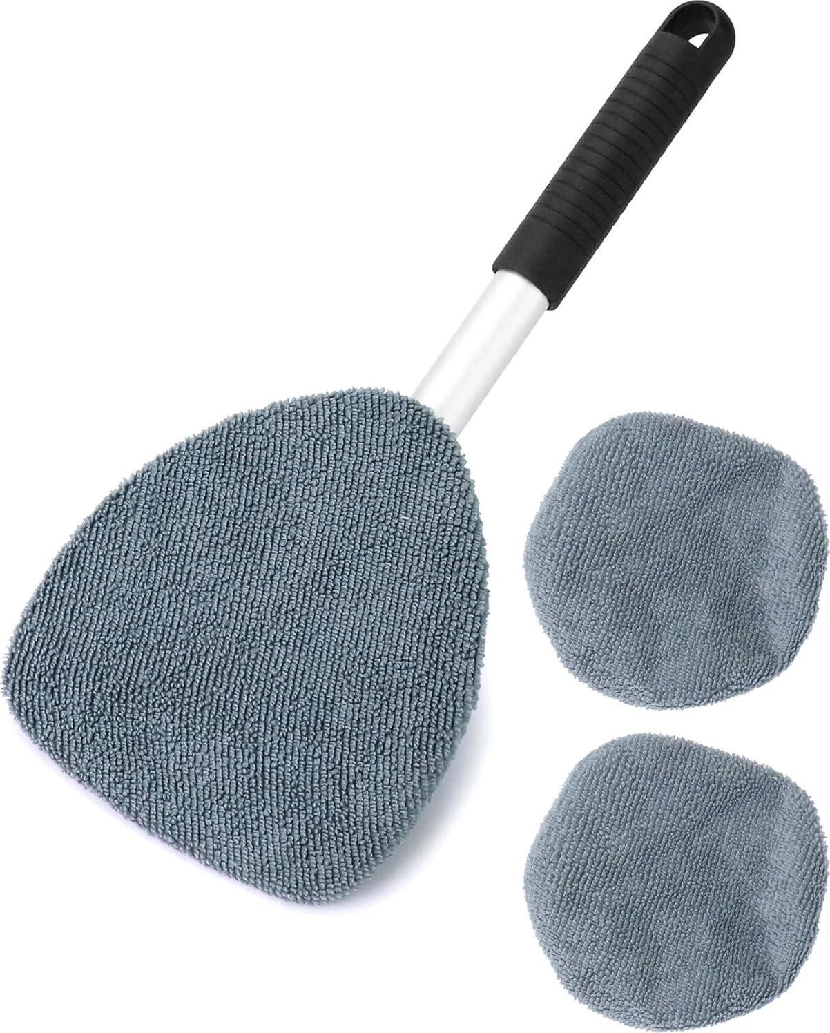 QWORK® Car Windscreen Cleaner, Extendable Car Window Cleaner Tool, Triangle Shaped Plate, 180 Swiveled Handle, Includes 3pcs Washable Pads
