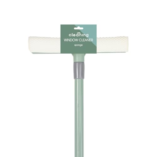 JVL Extendable Sponge Window Cleaner with Telescopic Handle, Streak-Free Glass Cleaning Tool - Green