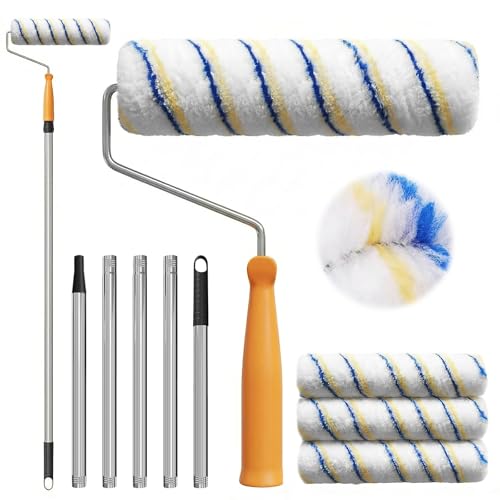 9 Inch Paint Roller Set with Extended Detachable Thickended Pole, Long Paint Ro