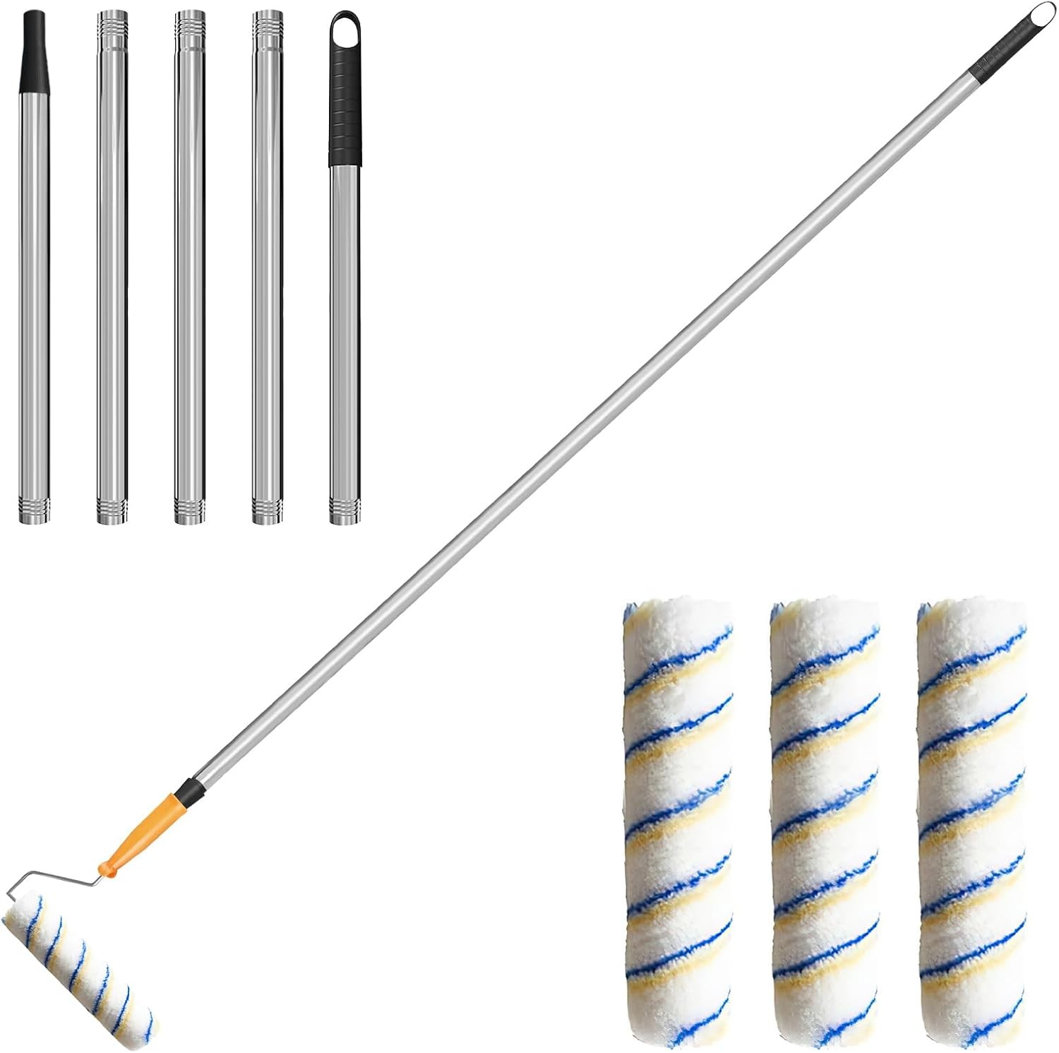Paint Roller with 6 Replacement Covers, Extendable & Detachable Thickened Pole, Long Reach Wall & Ceiling Painting Roller, Heavy Duty Household Painting Tool for Walls, Ceilings & Murals