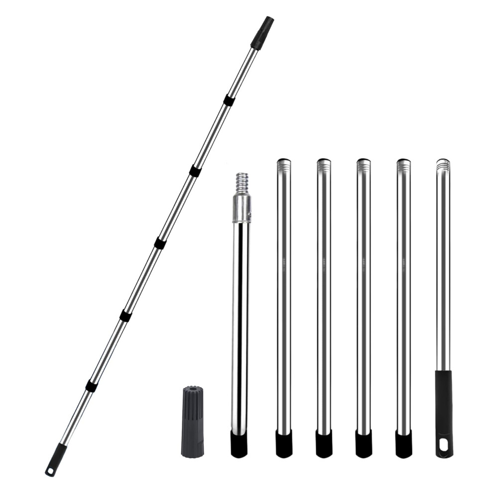 2.2m Paint Roller Extension Pole, 6 Segmented Stainless Steel Extendable Roller Pole Telescopic Pole with Screwed and Tapered Adapter, Extended