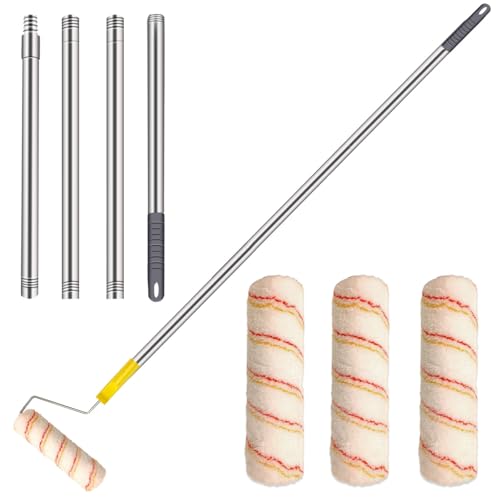 HpCuales Paint Roller Kit,Paint Roller Brush Set with 5.2FT Stainless Steel Pole and 3pcs 9Inch Roller Covers,Multi-Function Long Paint Roller Household Wall Painting Tool,for Walls and Ceiling