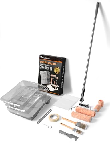 ROLLINGDOG Paint Roller Set - 9 Inch Paint Rollers and Tray Sets with Extension Pole,Paint Brush,Microfiber Roller Cover,15 PC Paint Roller Kit for Painting Walls and Ceilings