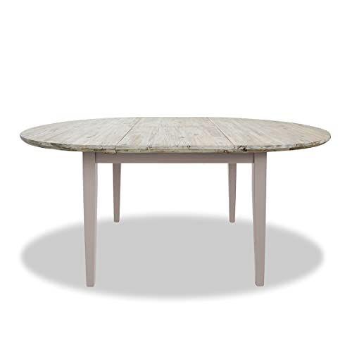 Statement Furniture Florence Extending Dining Table | Round/Oval Kitchen Table | Pine Wood Construction, Limed Acacia Top |W115cm-160cm, D115cm, H76cm, 5 Colours (dove grey)