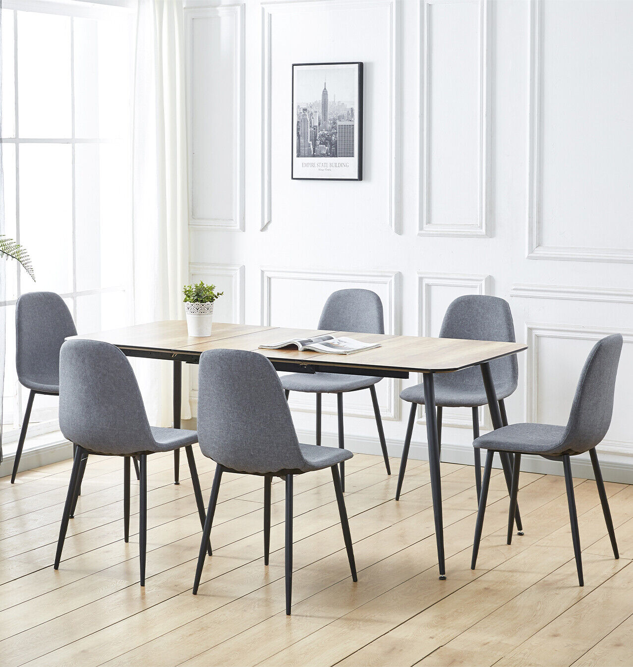 Dining Set, Large Extending Kitchen Table(1.2m to 1.8m) & 6 Grey Dining Chairs