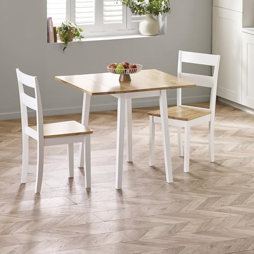 HGG Dining Table Set with 2 Chairs - Rubberwood Furniture - Small Table and 2 Chairs - Kitchen Table and 2 Chairs - Extending Dining Table - Small Round Table