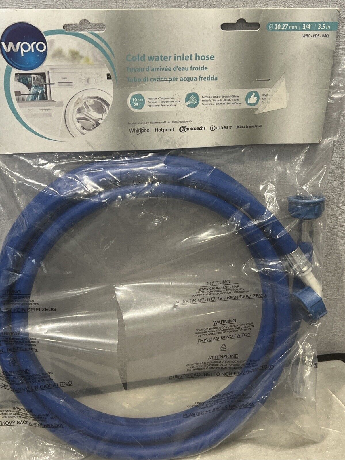 Wpro Hose Extension for Washing Machine 3.5m Cold Water Inlet Hose C00375223