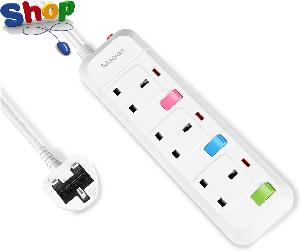 Mscien 3M Extension Lead Surge Protection 3 Way Individually Switched Power Strip With 3 Meter Extension Cord 2500W/10A(3 Gang-3M Cord