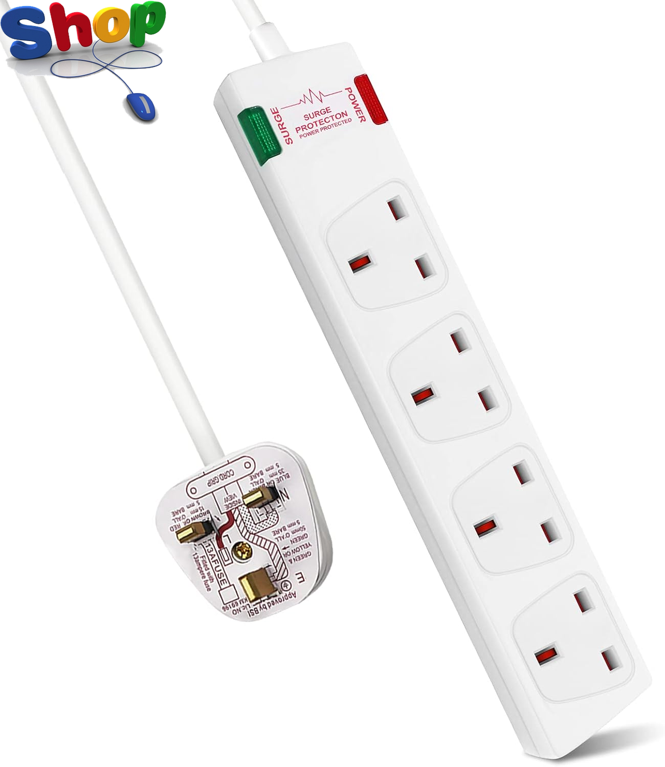 4 Way Extension Lead with Surge Protection, 13A/250V~ Multi Sockets Power Strips