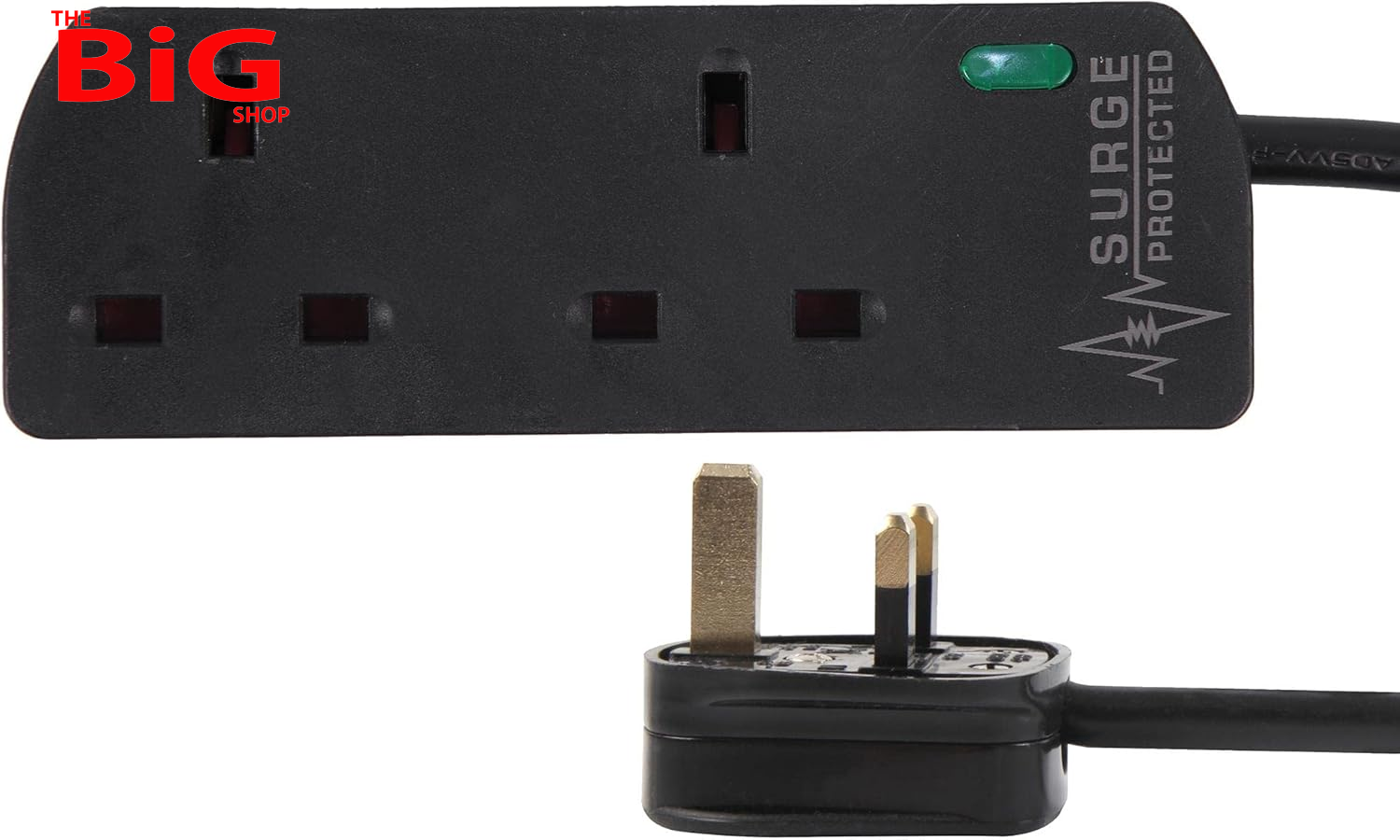 PELB1989 Mains Extension Lead with Surge Protection, 2 Gang, 1m, Black