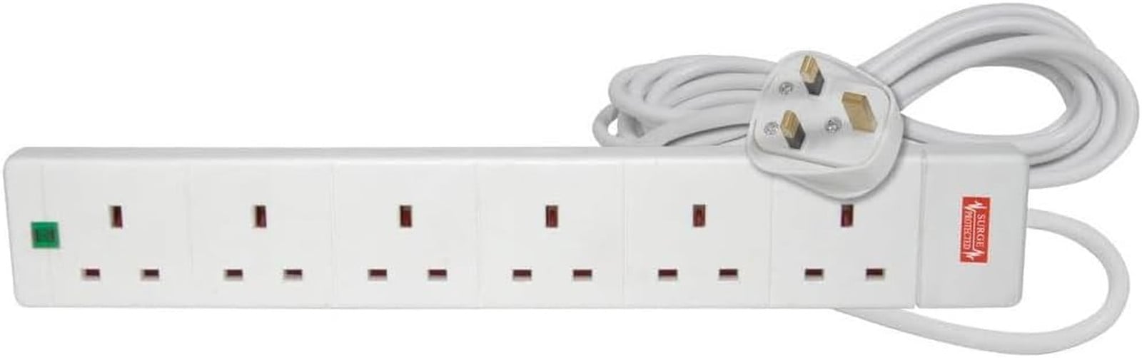 6 WAY 5M Extension Lead OR 6 Gang Extension Lead with Surge Protection White, 5m
