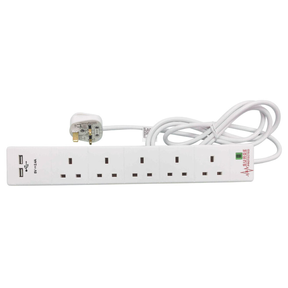 5 Gang Extension Lead with Surge Protection and Dual USB Ports