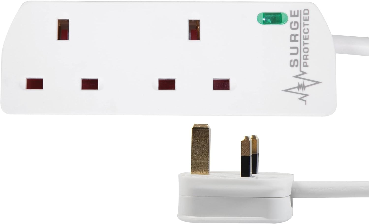 Masterplug 13A 4 Socket White Extension Lead with Surge Protection - 2m - Pack of 2