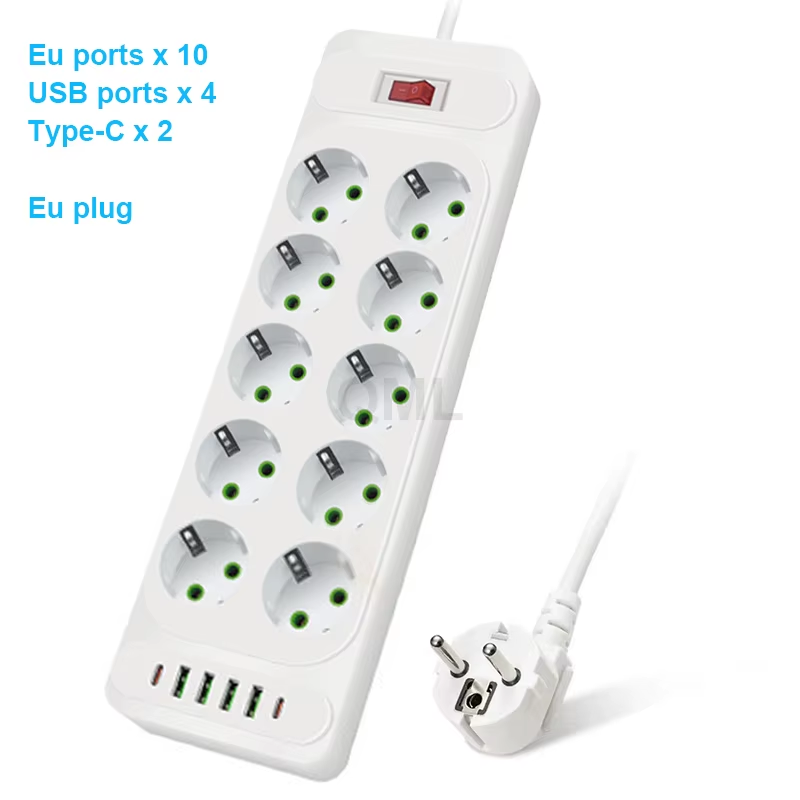 2500W EU Power Strip 2M Extension Lead Safety Switch European AC Plug