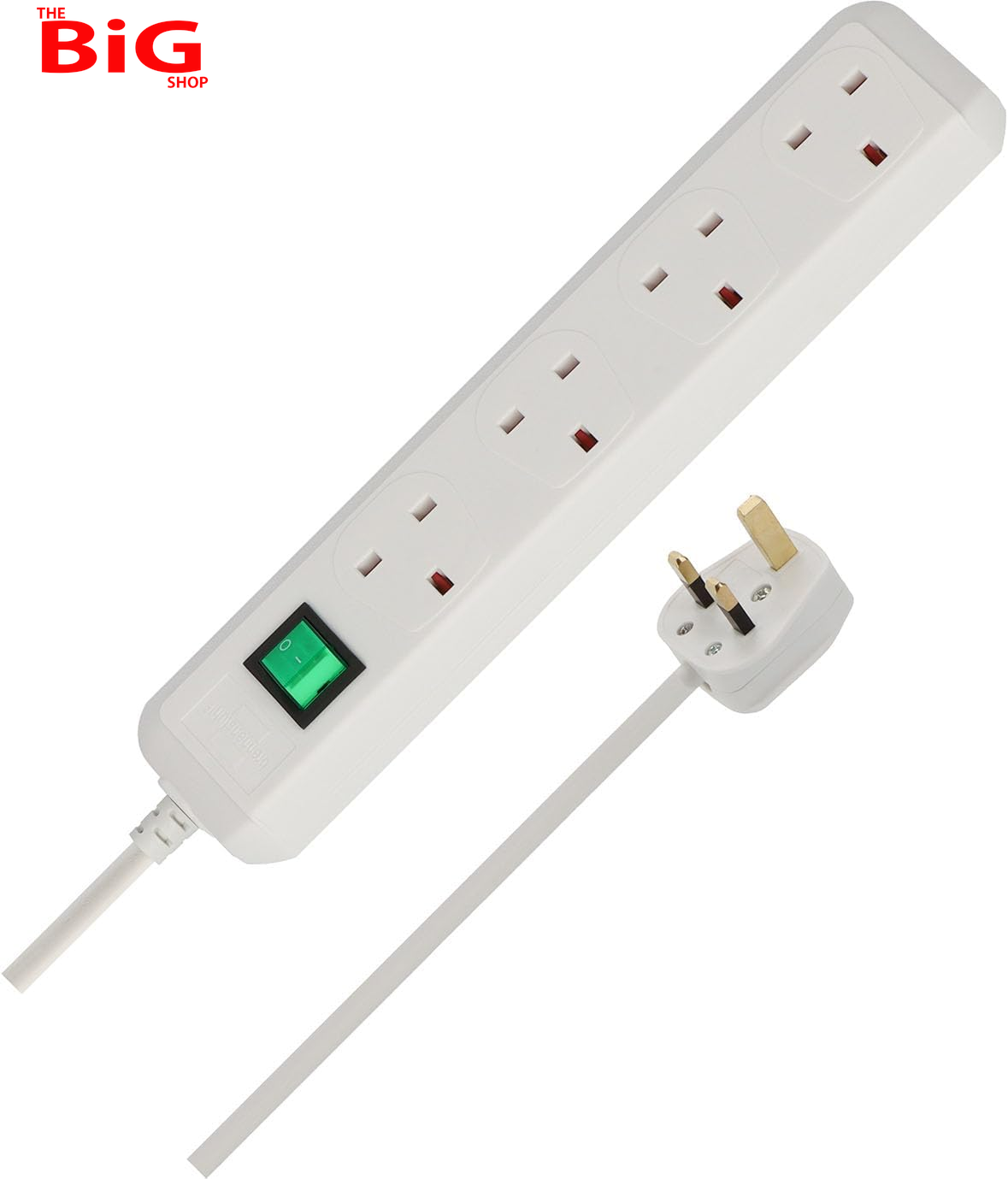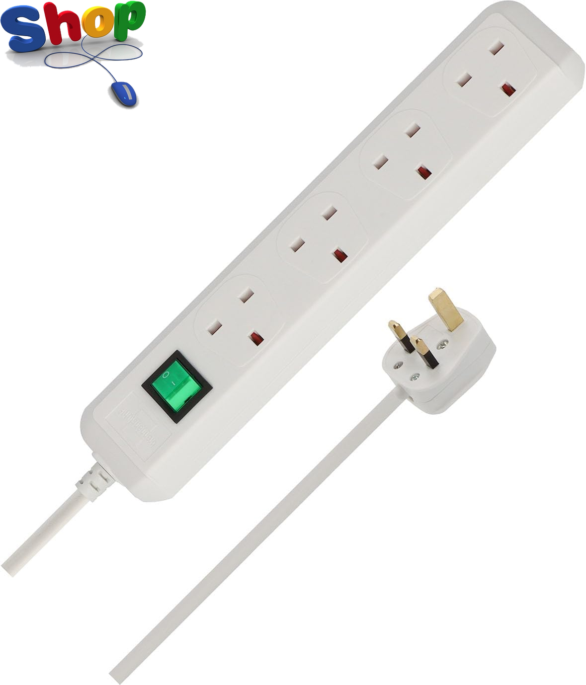 EXTRASTAR Extension Lead with Individual Switch, 4 Way 2M Extension Cable, Wall