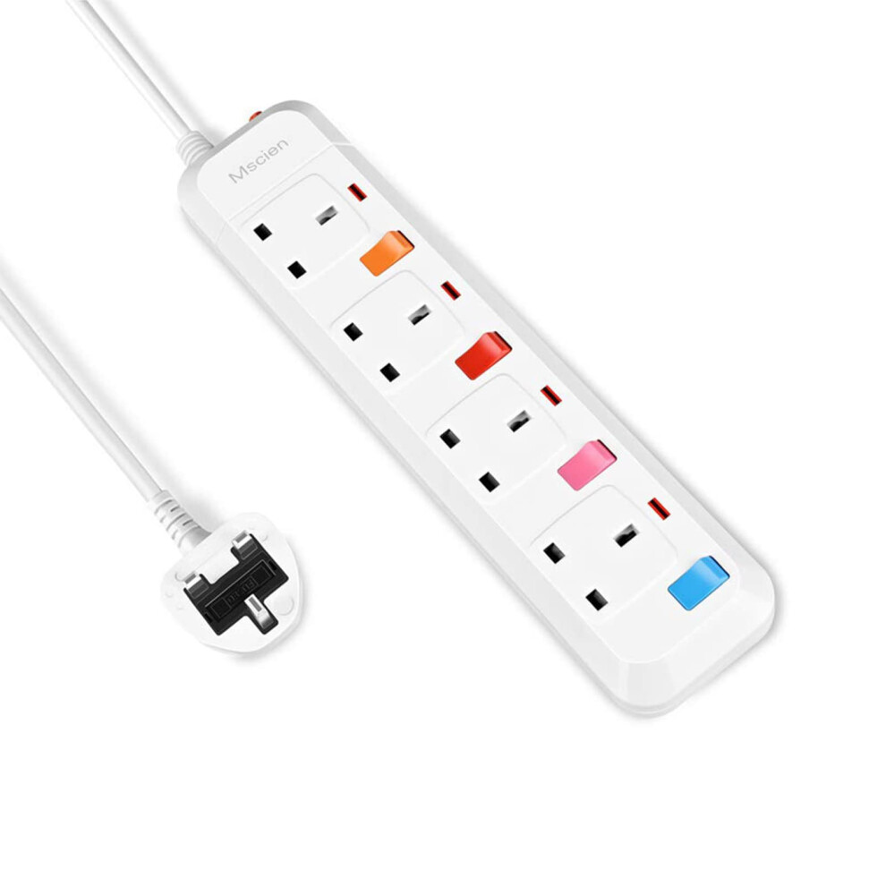 Mscien 3M Extension Lead with Independent Switch 4 Way Extension Lead UK Wall Mo