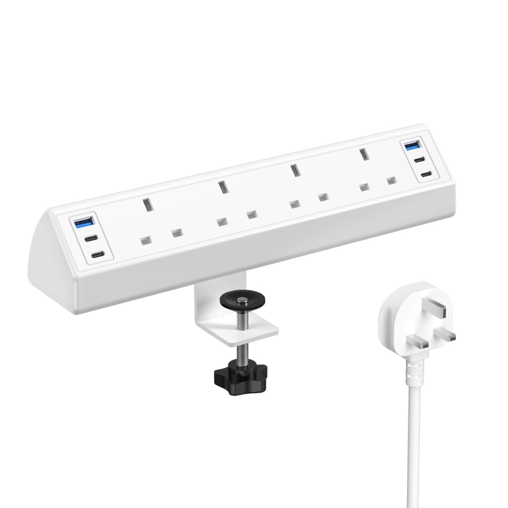 Desk Clamp Power Socket USB C Slots, 40W Total Fast Charging Station, 4 Way Desk Extension Lead with Switch, Desktop Power Strip 2M for Home Office, Fit 1.9" Tabletop Edge(White)