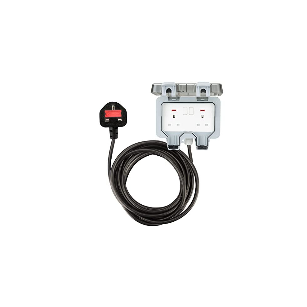 10M 2 Way 2 Gang IP66 Waterproof Outdoor Extension Lead Socket with Switch Indicator Light