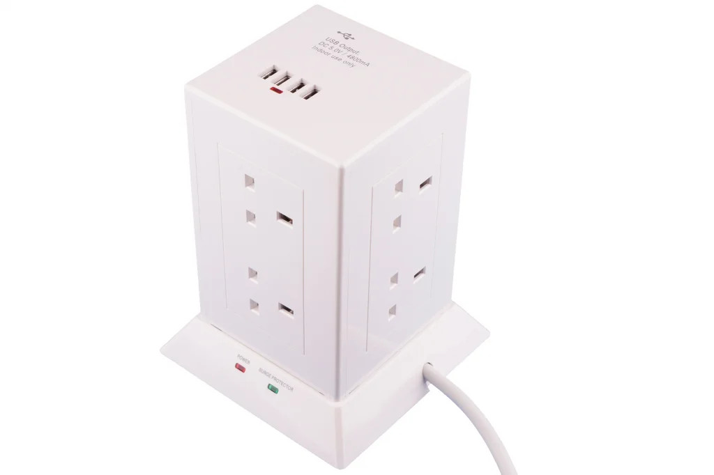 Mains Extension Leads Adaptors & Power Hub White Surge Protected 8x13A + 4xUSB