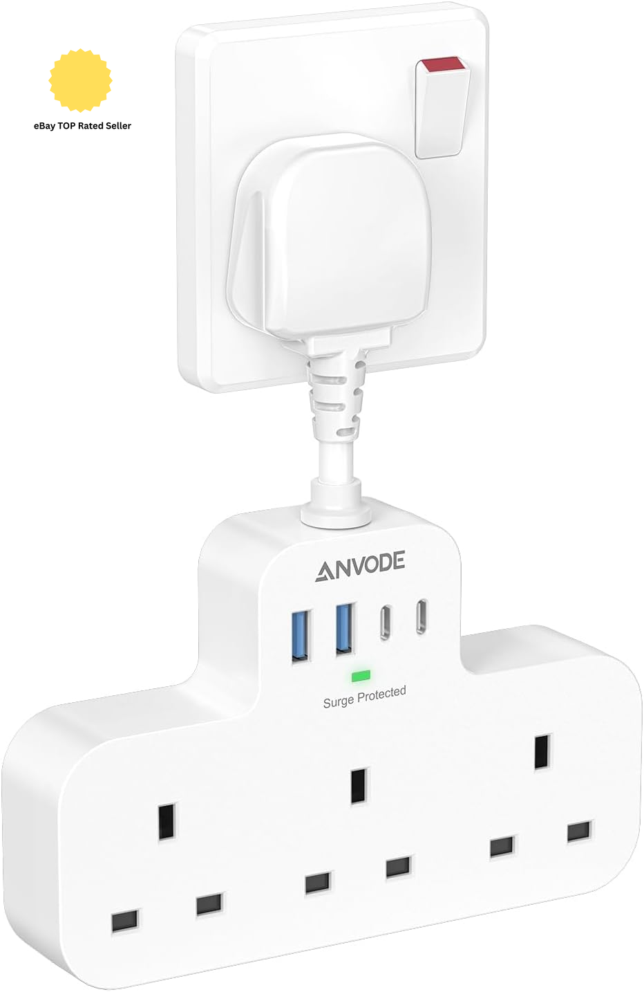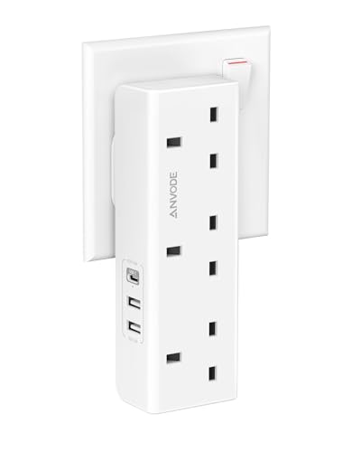 Multi Plug Extension Socket with USB C, ANVODE 3 Way Plug Adaptor with Flexible Socket, Adapter Plug UK Turn 1 to 7, Short Extension Lead Power Strip