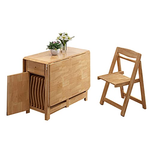 Folding Dining Table and Chairs Set with Drop Leaf Extension, Wheels, and Drawer, Solid Wood Farmhouse Design, Space Saving Kitchen Island Set