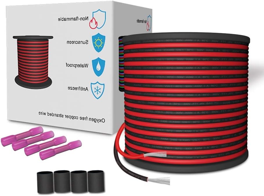 CARLITS 22AWG 100ft Extension Cable Wire Cord 30m 2x0.3mm² Tinned Copper 22 gauge 2 Color Red Black Cable Hookup Electrical Wire 12V 24V DC for Led Strips Single Color 3528 5050 2835