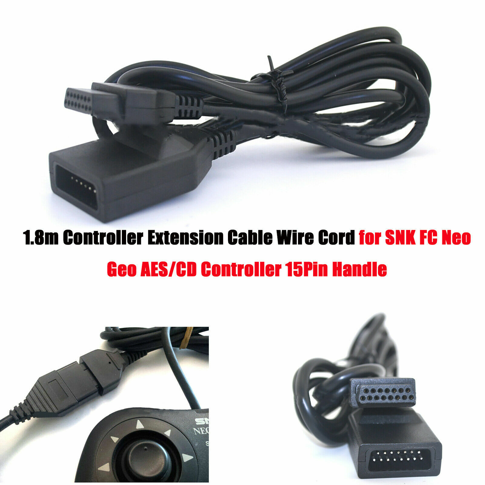 1.8m Extension Cable Wire Cord for SNK FC Neo Geo AES/CD Controller 15Pin Handle