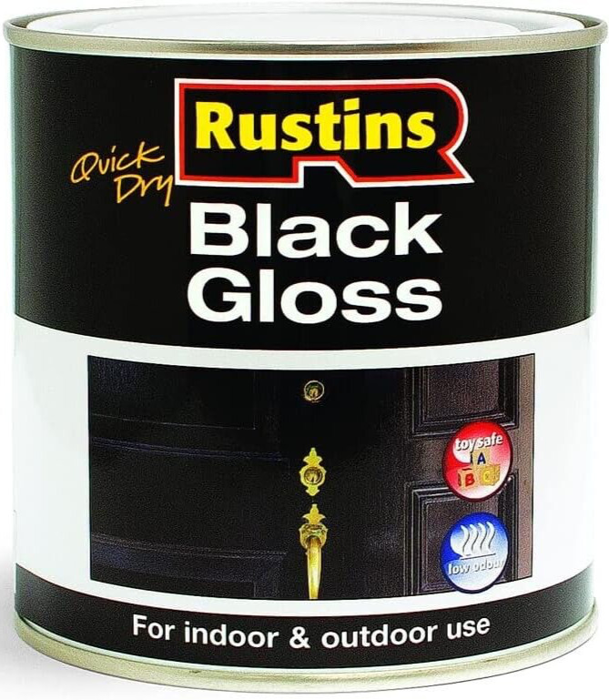 250ml Gloss Paint Black Small Can Rustins Wood Metal Quick Dry Interior Exterior