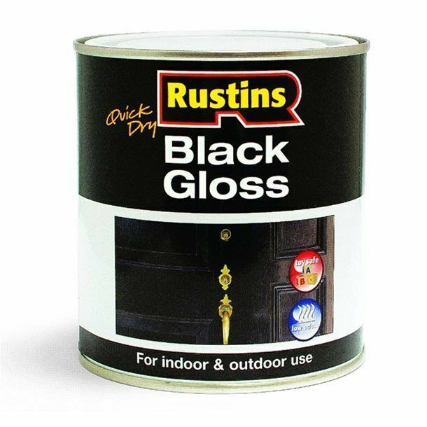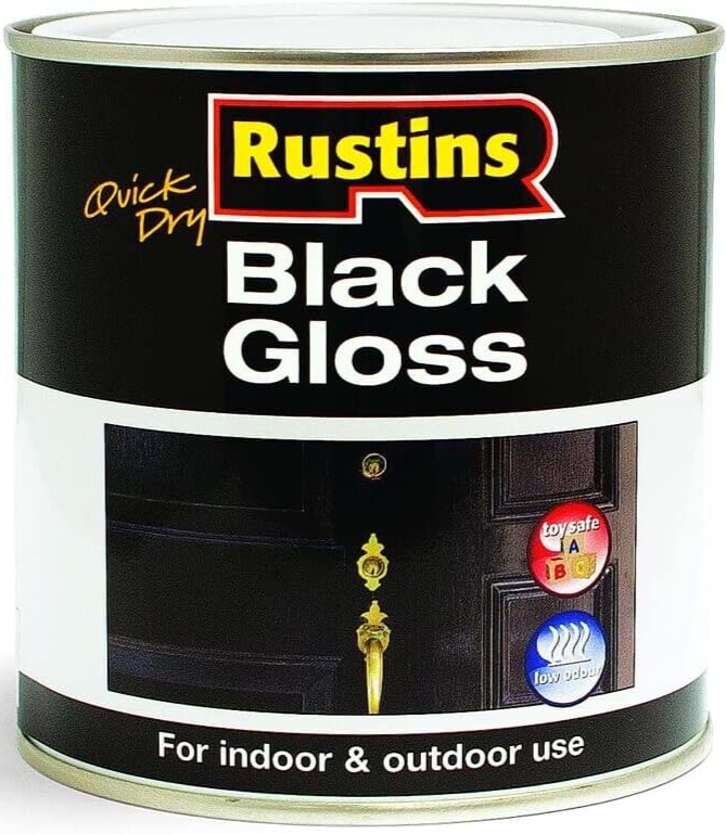 Rustins Quick Dry Black Gloss Paint 500ml Interior Exterior Decorating