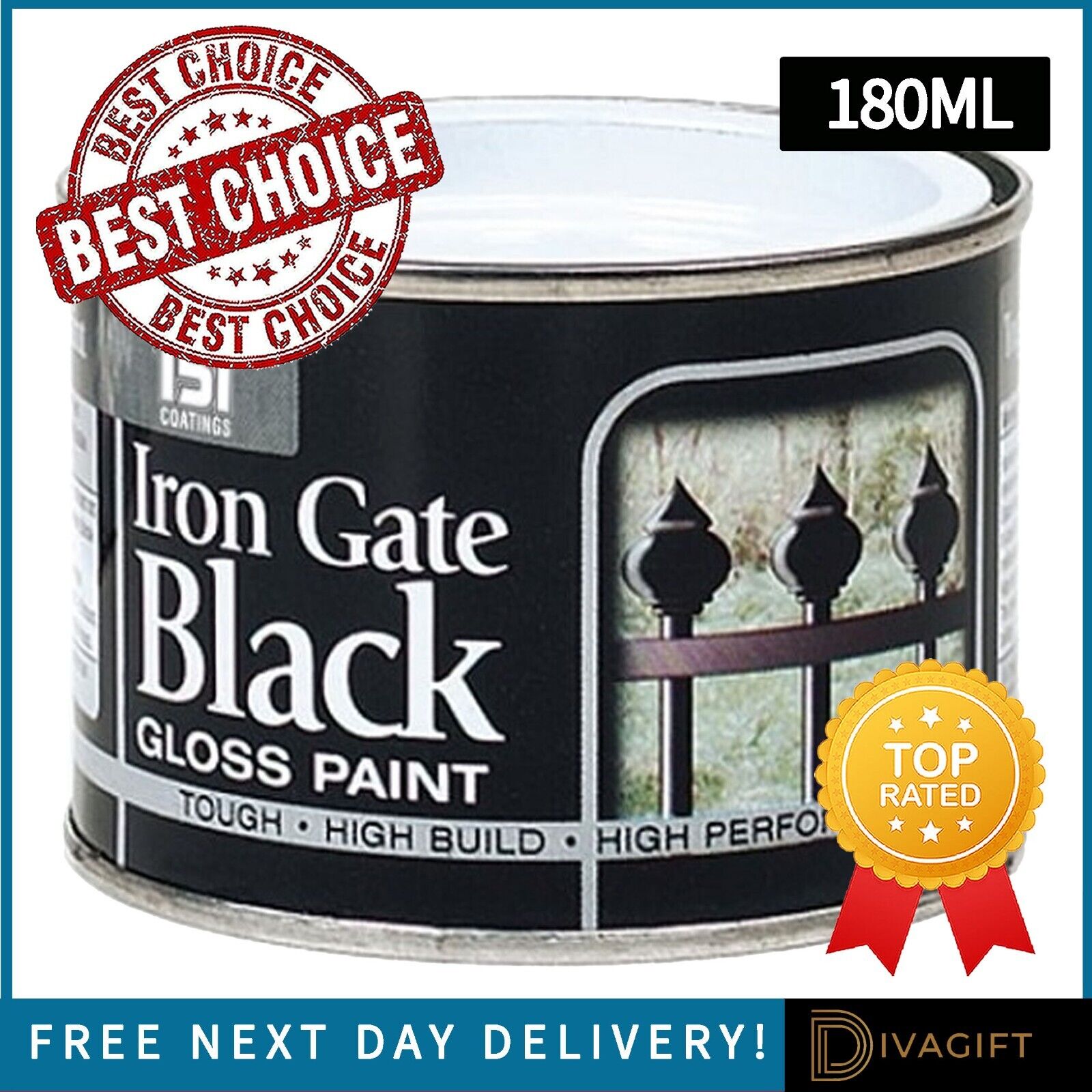 BLACK IRON GATE GLOSS PAINT EXTERIOR METAL GATES FENCES TOUGH DURABLE 180ML