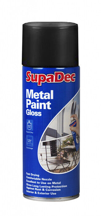 Gloss Black Metal Spray Paint SupaDec Fast Drying 400ml Interior or Exterior Use
