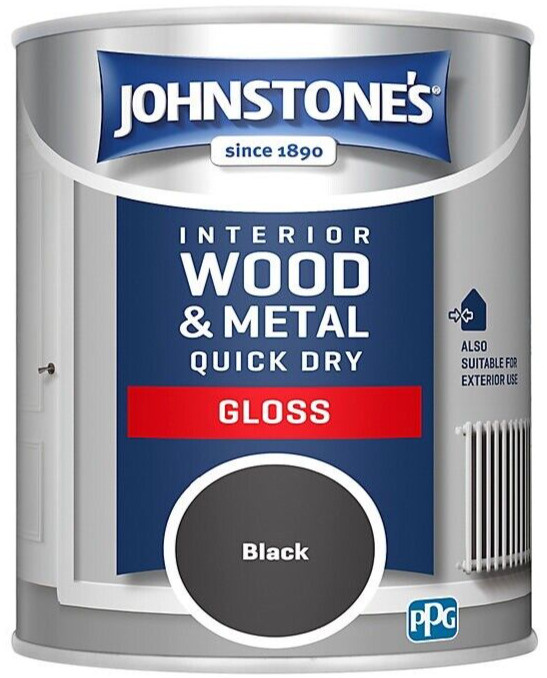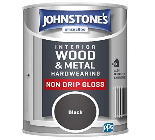 Johnstone's - Interior Wood & Metal Hardwearing - Black - High Sheen - Non Drip - Gloss Finish - Suitable Paint Interior & Exterior - Dry in 16-24 hours - 14m2 Coverage per Litre - 750ml