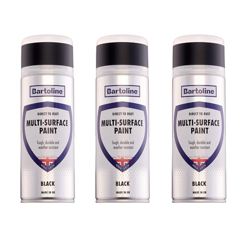 Bartoline Direct to Rust Multi-Surface Paint Black Gloss Finish 400ml – 3 Pack Apply to Rust, Metal, Wood, Plastic & Ceramic All-in-One Primer and Topcoat Weather Resistant Interior & Exterior Use