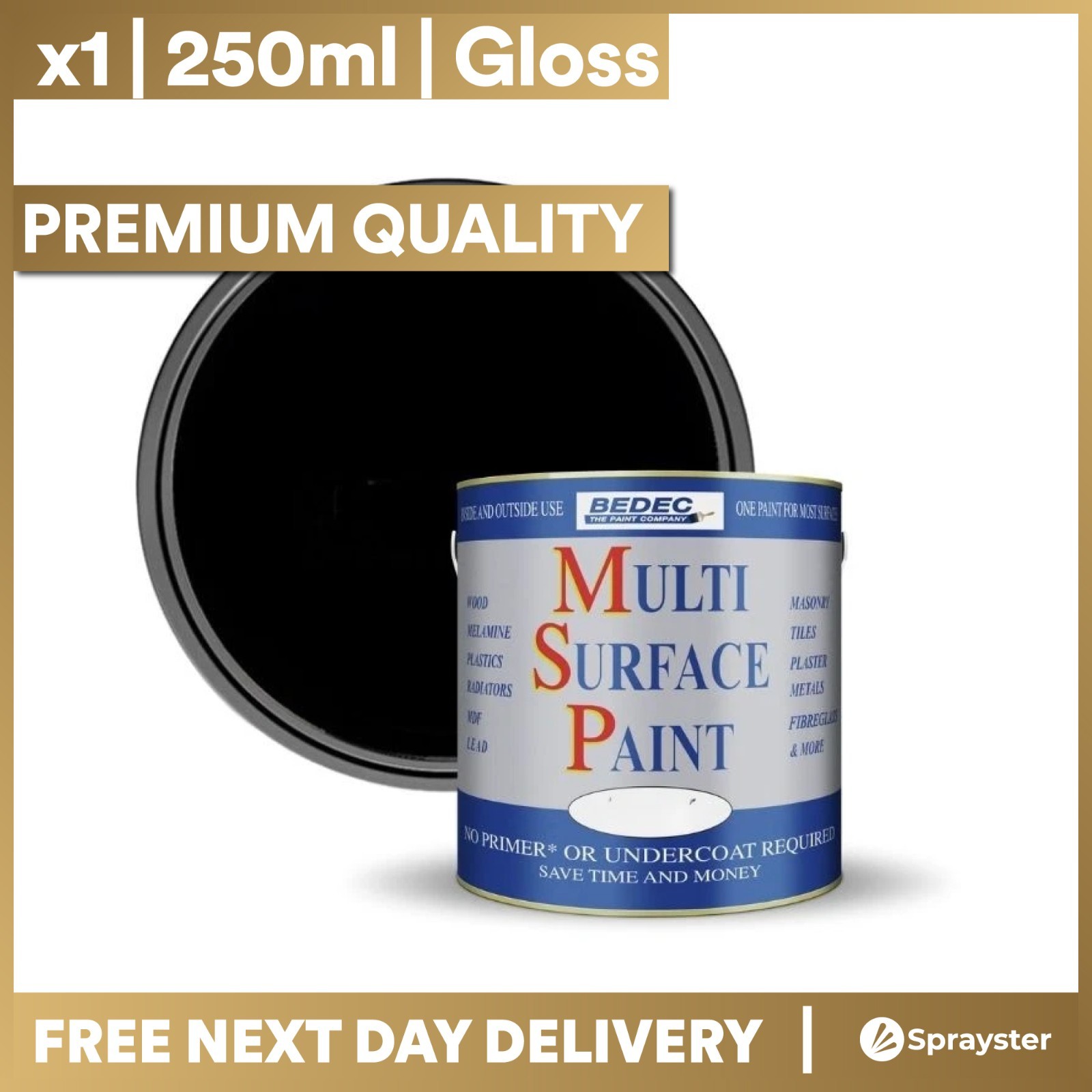 Bedec Multi-Surface Paint MSP All In One Interior/Exterior Black Gloss 250ml