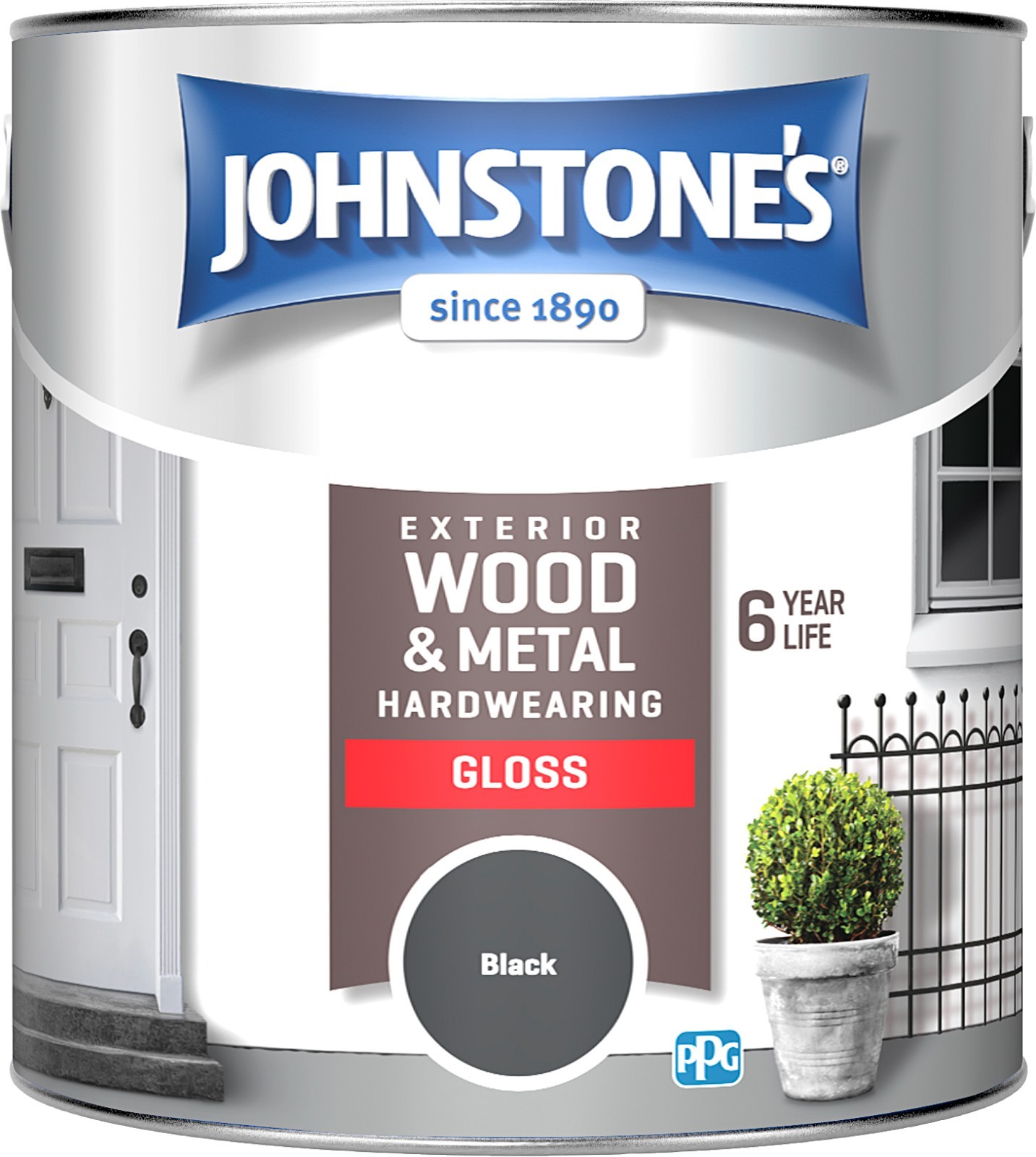 Johnstone's Wood & Metal Exterior Hardwearing Gloss Paint 2.5L - Black