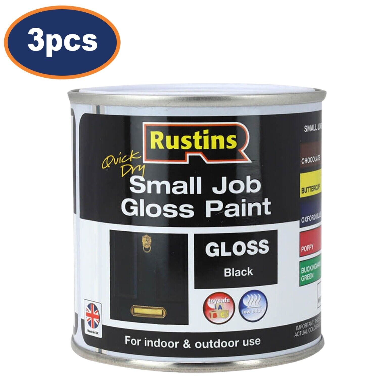Rustins Paint Gloss Black Wood Metal Quick Dry Interior Exterior 250ml 3Pcs