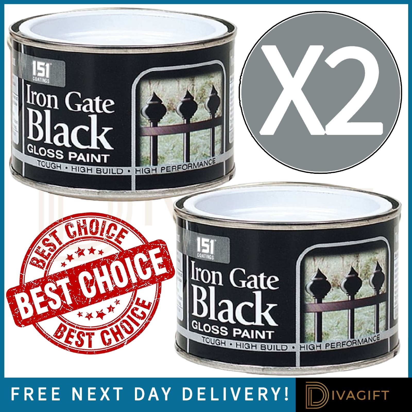 2 x BLACK IRON GATE GLOSS PAINT 180ML EXTERIOR METAL GATES FENCES TOUGH DURABLE