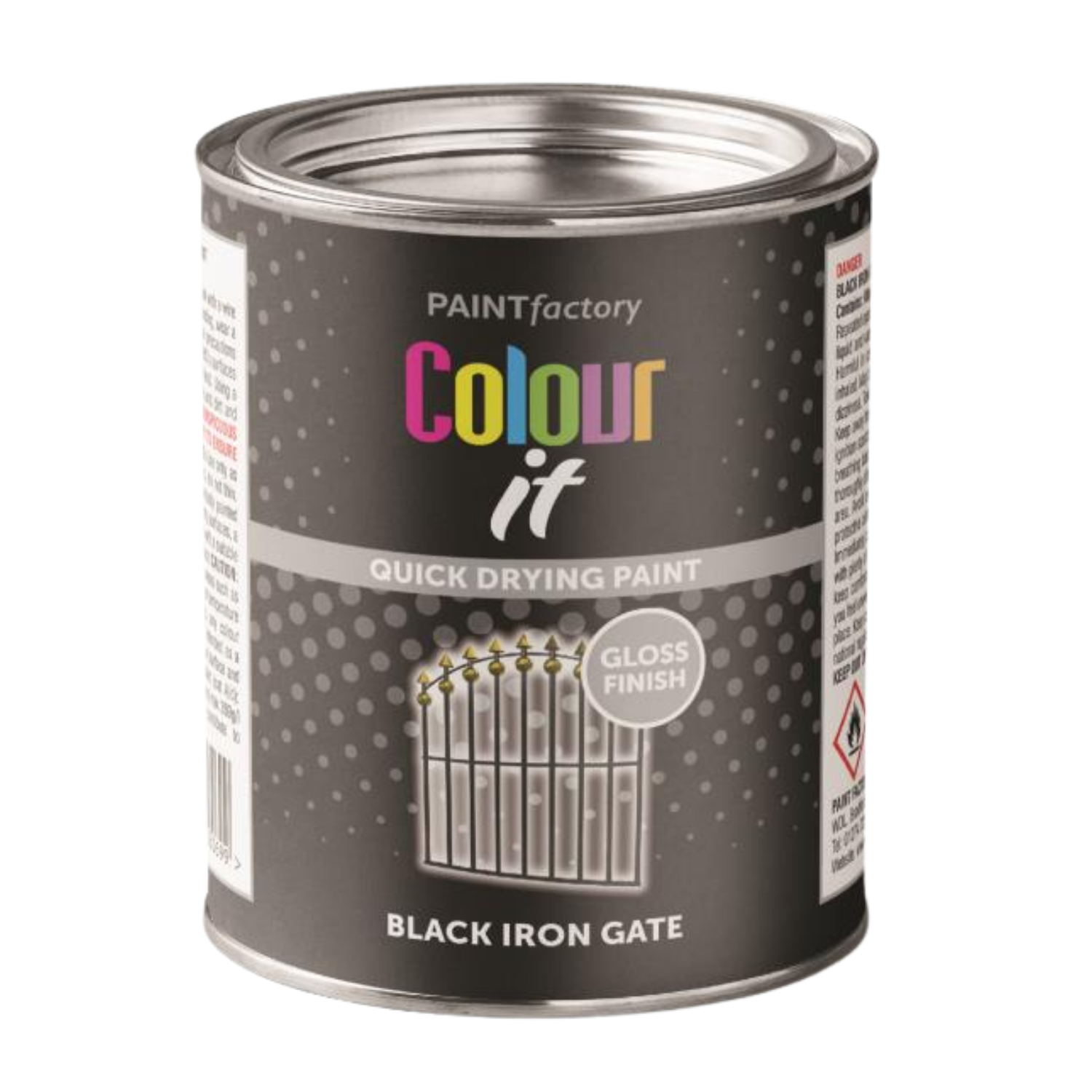 Paint Factory Black Iron Gate Gloss Finish Tin Paint Exterior Quick Dry 300ml