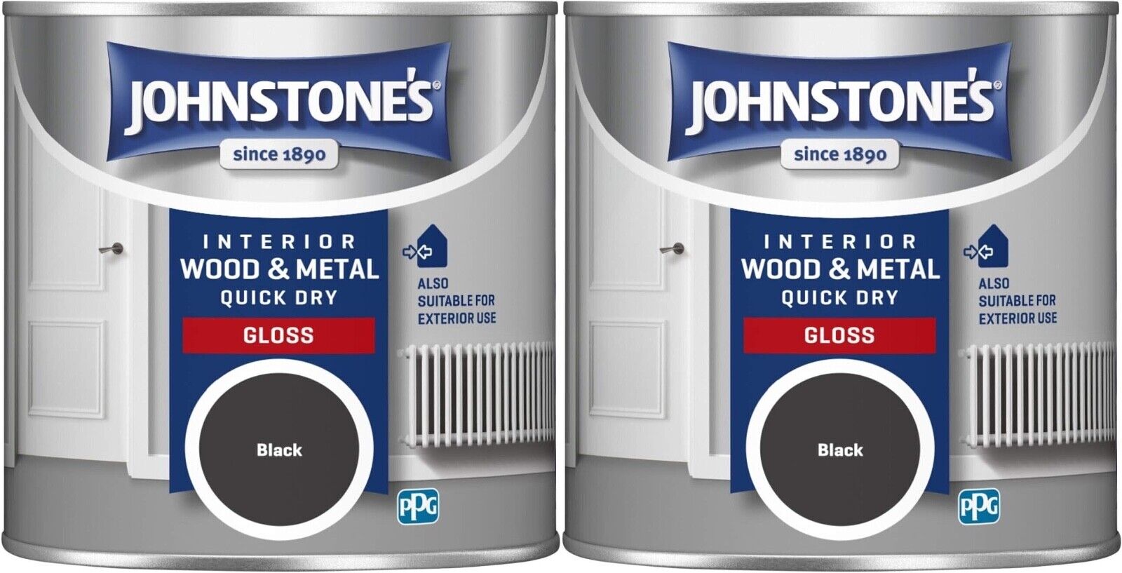 2x Johnstone's Wood & Metal Interior Exterior Quick Dry Gloss Paint 250ml- Black