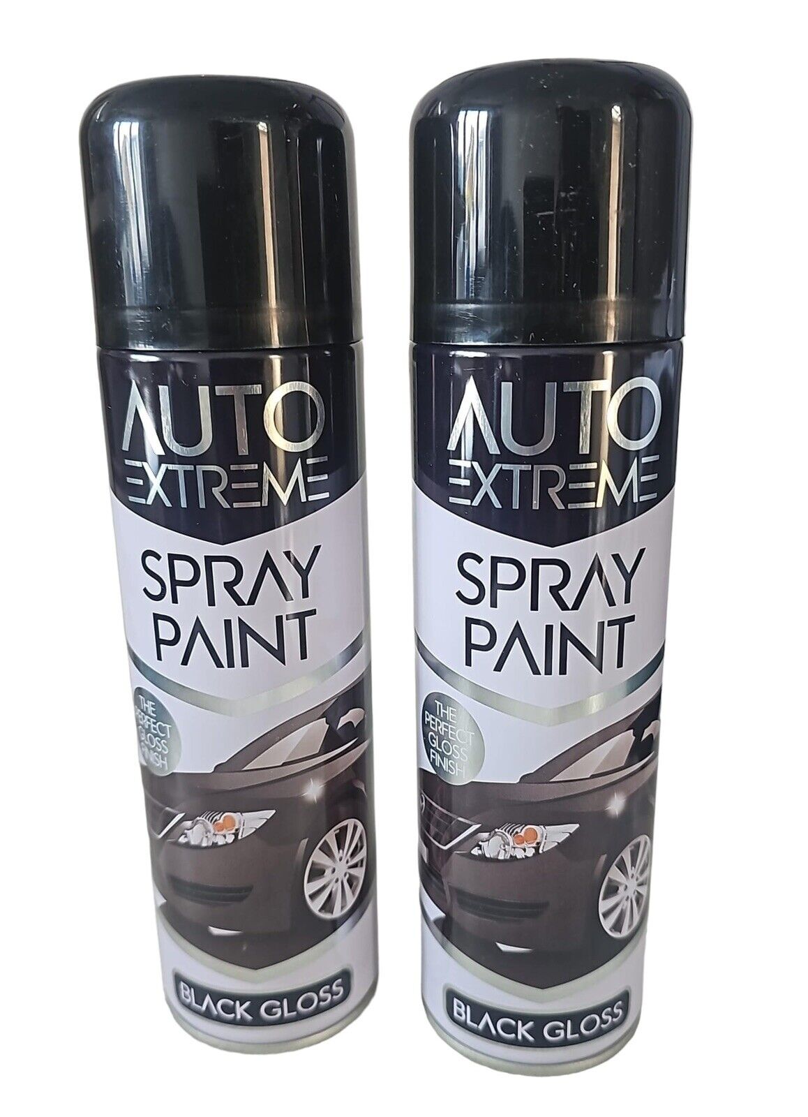 2 Black Gloss Aerosol Spray Paint Interior & Exterior Auto Car Bike Paint 250ml