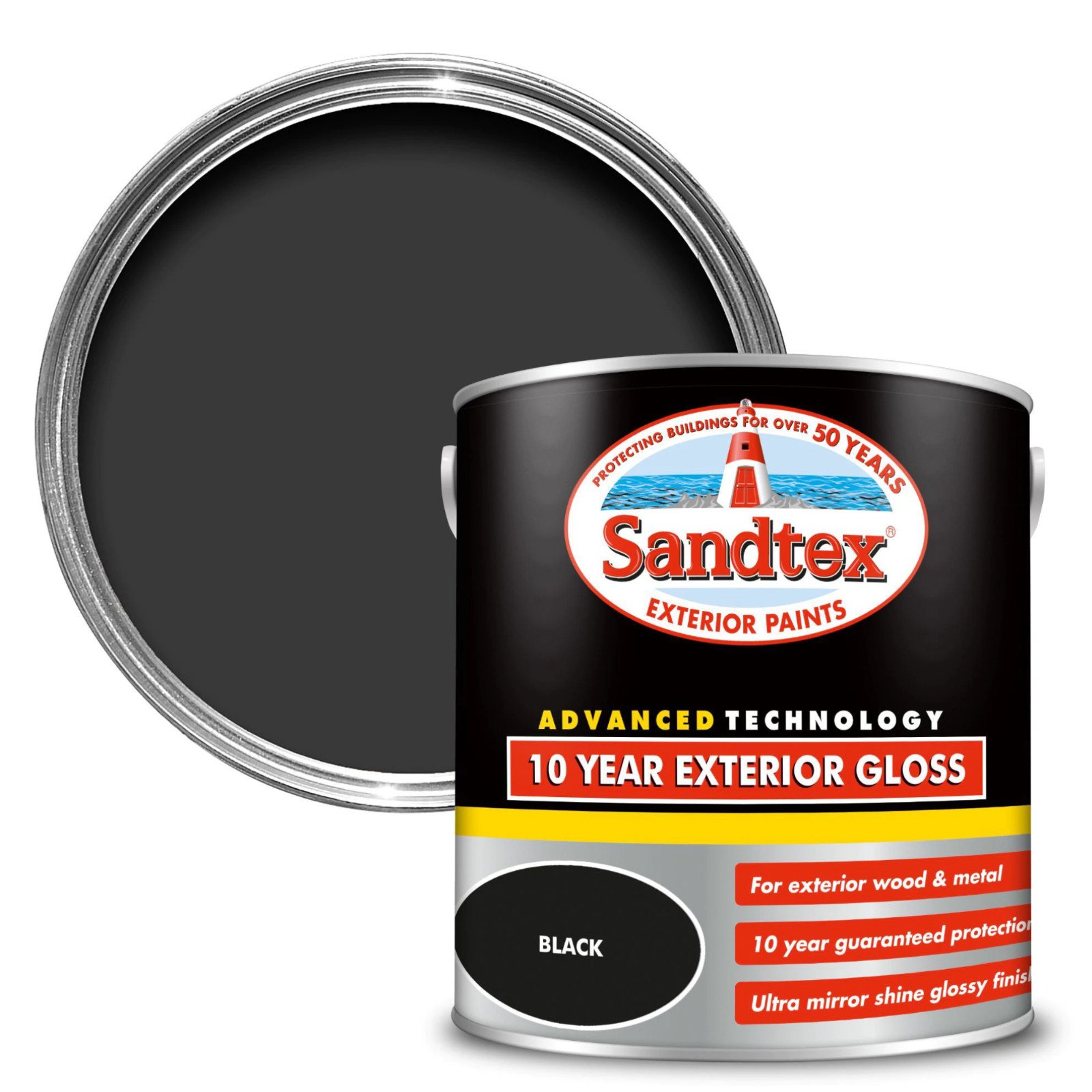 Sandtex Black Exterior Gloss Paint 10Year Wood & Metal Outside Waterproof 2.5L