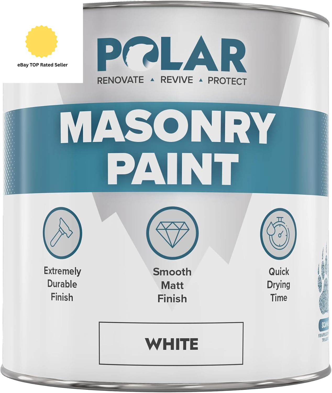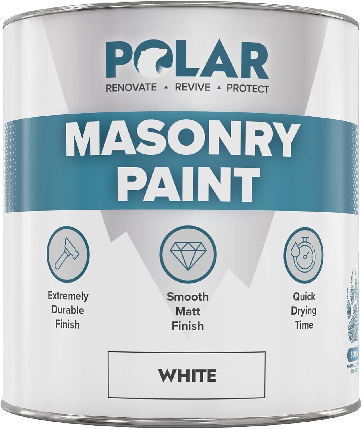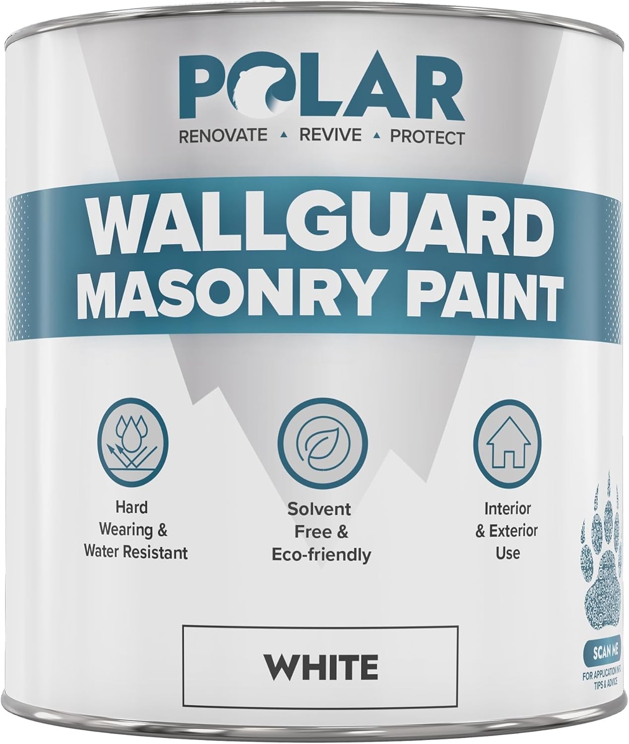 Polar Wallguard Masonry Paint - White - 5 Litres - Exterior Coatings - Ideal For Brick, Stone, Pebbledash & Concrete - Waterproof Protection
