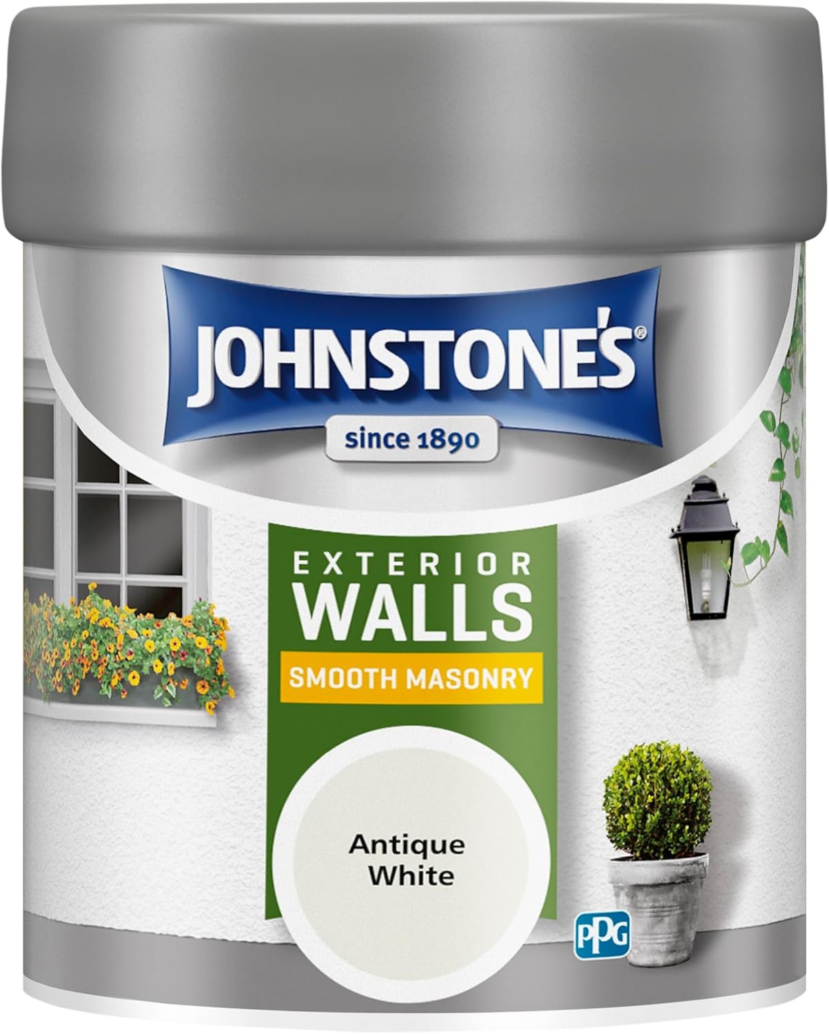 Johnstone's â Exterior Smooth Masonry Paint - Tester Pot Antique White Up to 15 Years Protection Weather & Dirt Resistant 12m2