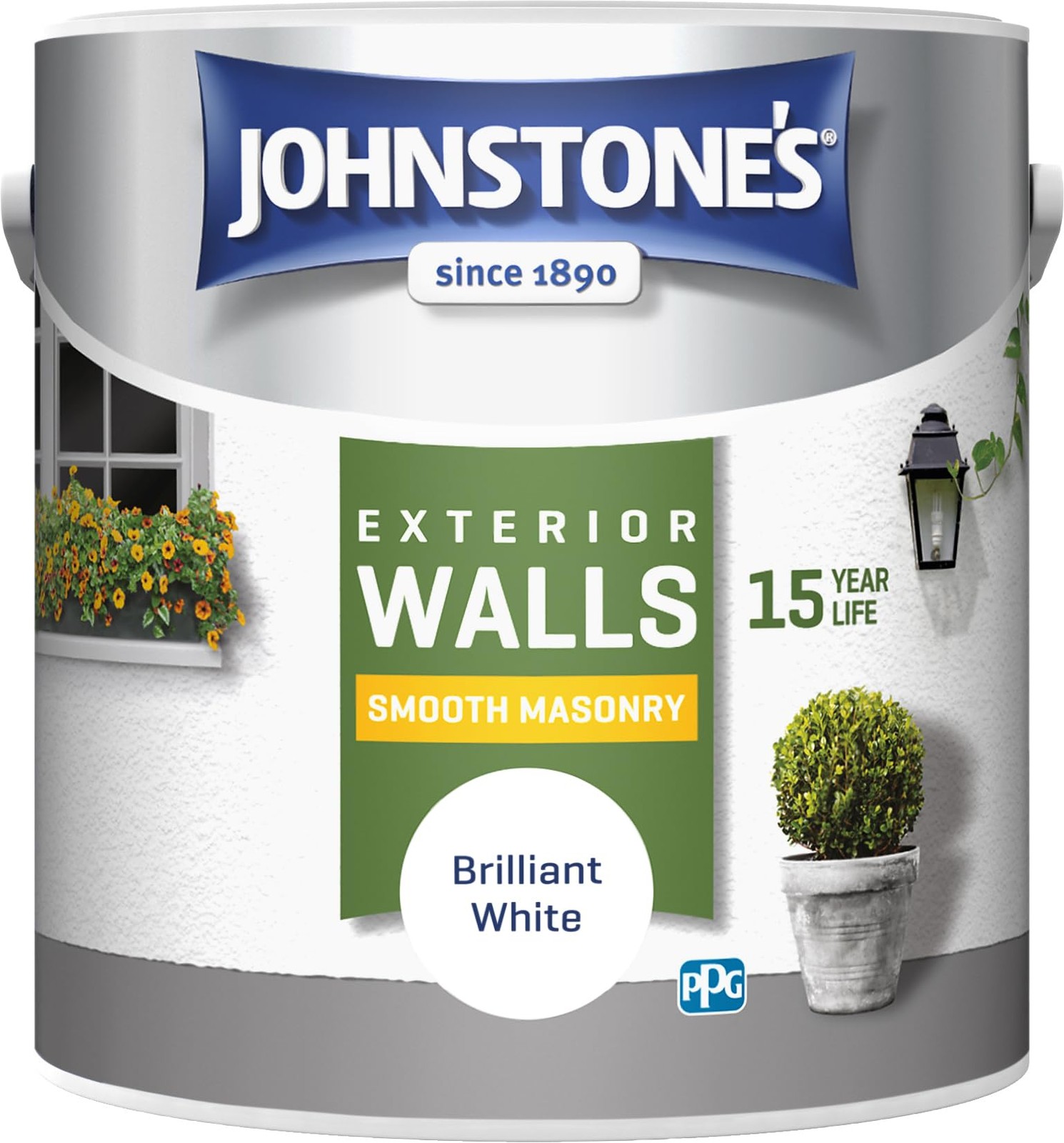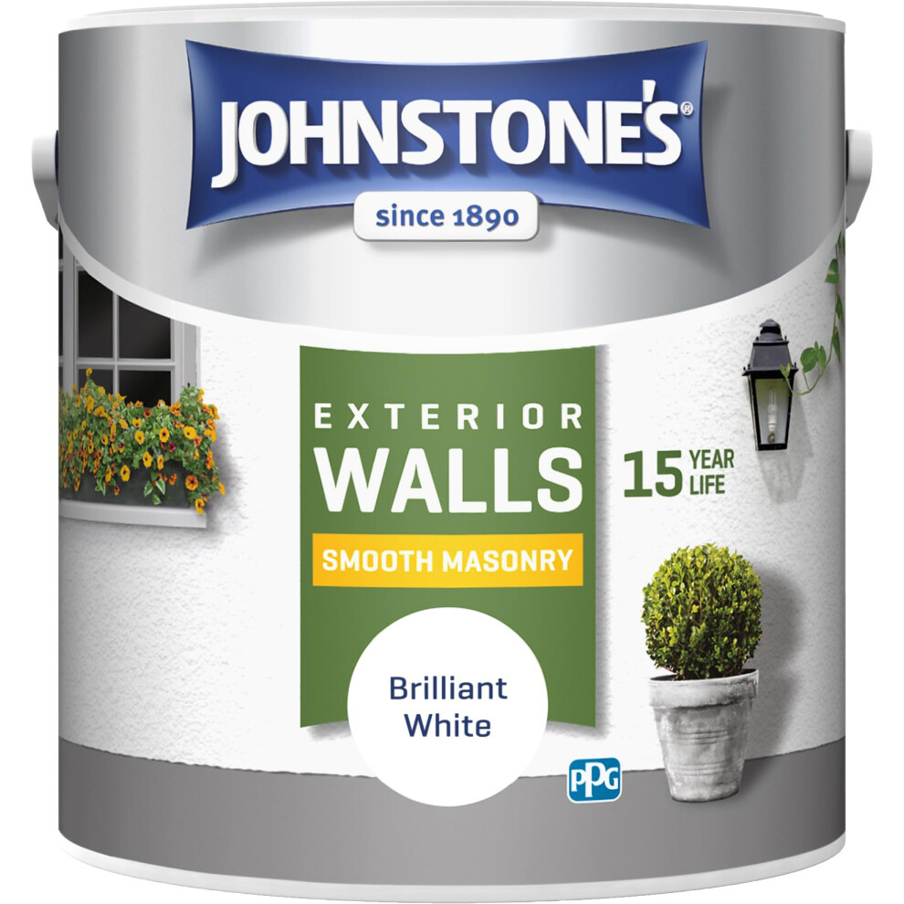 Johnstone's Exterior Smooth Masonry Paint - Brilliant White | Brick, Concrete, Patio & Outdoor Walls |15 Years Protection, Weather & Dirt Resistant | 30m² Coverage Per Tin, Dry in 1-2 Hours | 2.5 L