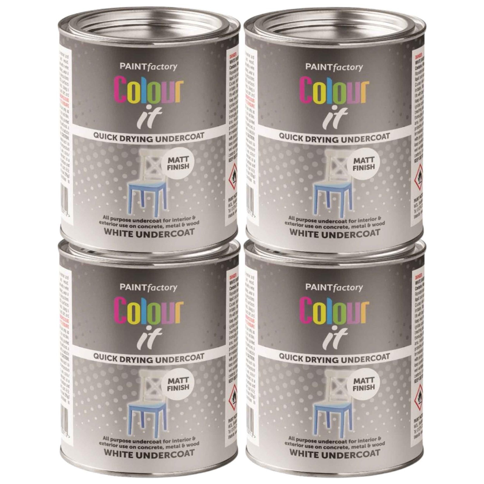 4x Paint Factory White Matt Undercoat Tin Paint Fast Dry Interior Exterior 300ml